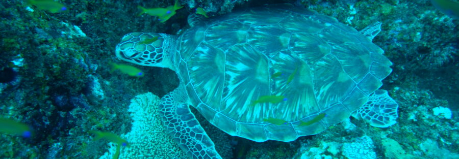 In India, green turtles nest along the coasts of Gujarat, the Lakshadweep Islands, and the Andaman Islands, and graze on seagrass in the lagoons of the Lakshadweep. While long-term nesting data remains limited, the foraging populations of the Lakshadweep appear to be increasing — possibly due to better protection of nesting beaches in Sri Lanka or a decline in sharks, their natural predators.